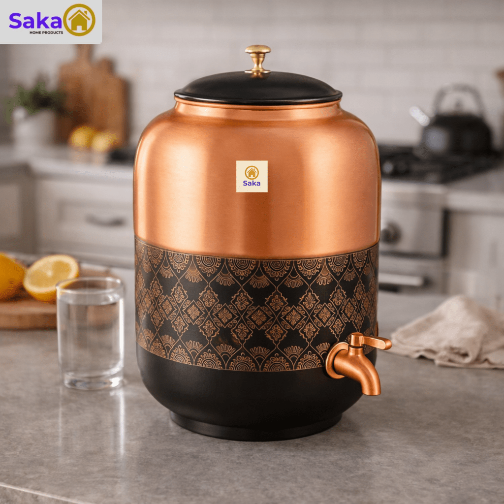 Upgrade your space with our premium Copper Capsule Tank, thoughtfully designed to combine traditional wellness benefits with a modern aesthetic. Crafted from high-quality pure copper, this tank features a unique dual-finish design — half dark embossed for a rich, antique look and half matte lacquered for a sleek, contemporary touch.