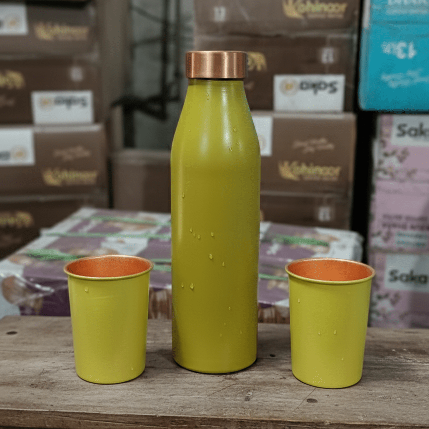 Add a touch of elegance to daily hydration with the Sigma Silk Finish Green set. Designed for both style and functionality, this premium copper bottle with matching glasses makes a perfect personal or gifting choice.