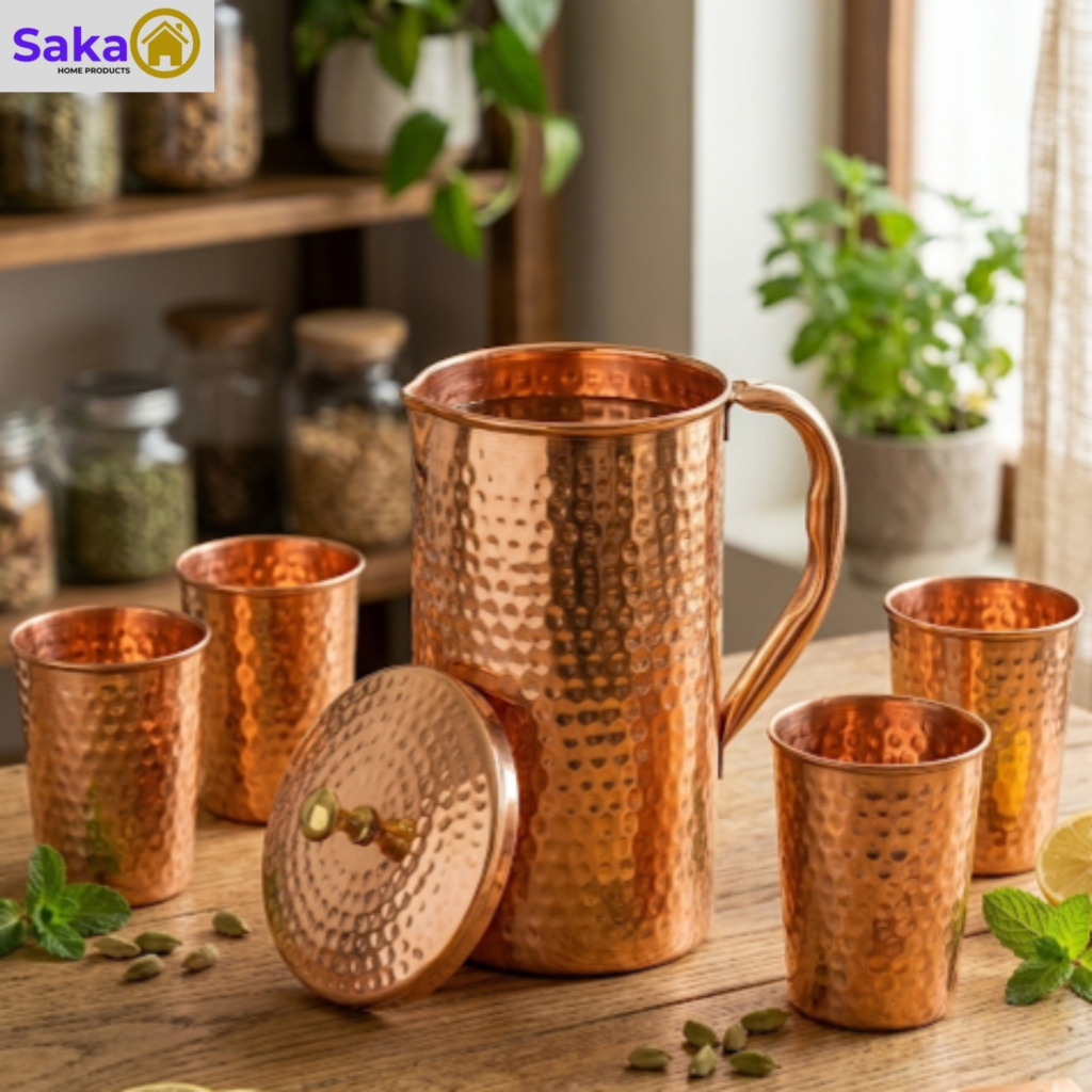 1 Copper Jug (1.3/1.5 L) + 4 Copper Glasses (250 ml each)