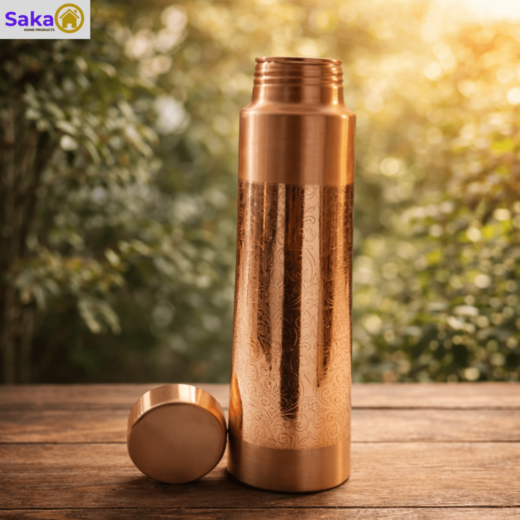 Add timeless wellness and heritage craftsmanship to your routine with this beautifully embossed pure copper bottle.